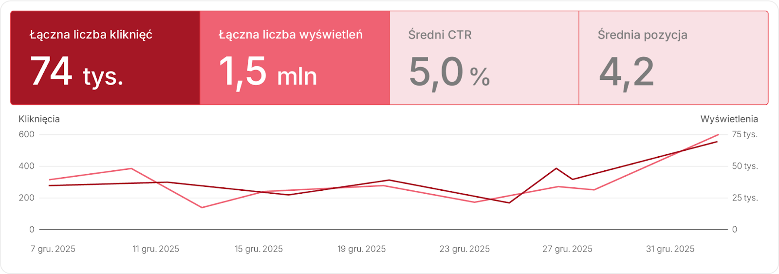 Nasza strategia opiera się na długofalowym budowaniu widoczności, a nie na krótkotrwałych wzrostach. W branży objętej ograniczeniami reklamowymi stabilność jest kluczowa, dlatego planujemy działania w taki sposób, aby sklep stopniowo zyskiwał coraz silniejszą pozycję w wynikach wyszukiwania, bez ryzyka gwałtownych spadków.